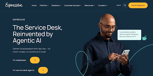 Espressive – Employee self-service chatbot designed for FAQs. Reduces repetitive questions, but orchestration remains shallow.